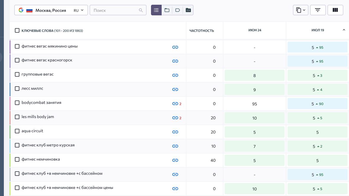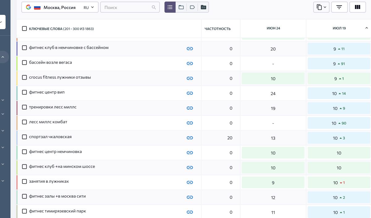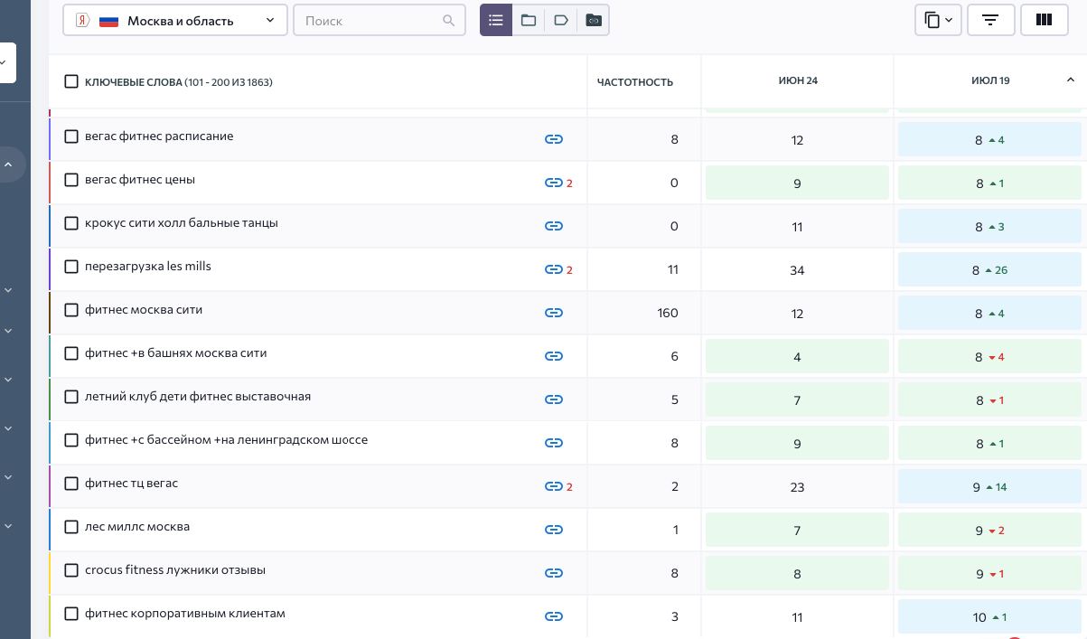 В итоге уже после первого месяца работ, динамика положительного роста позиций не заставила себя ждать. На 25% позиции всего ядра выросли. Около 50 запросов вышло на 1 страницу, топ-10 (Яндекс и Google). Это очень хороший показатель, учитывая что еще не все работы успели проиндексироваться.